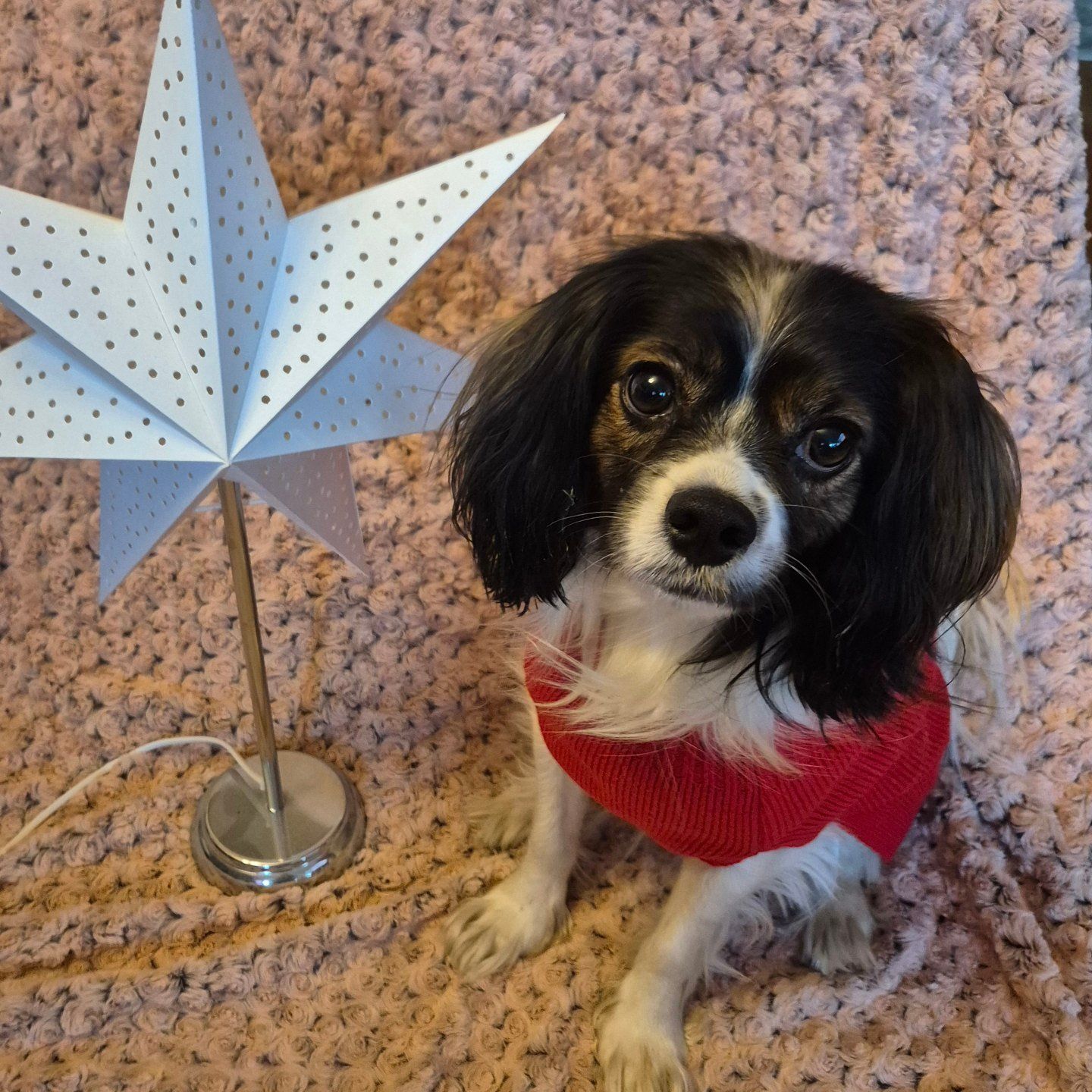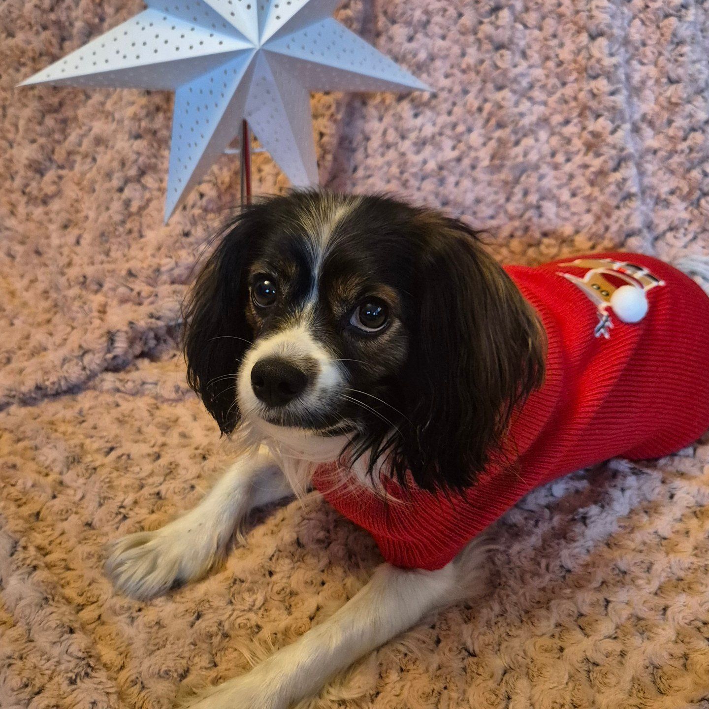 - För att hålla tröjan snyggt på plats har den korta muddar runt frambenen och band vid bakbenen .