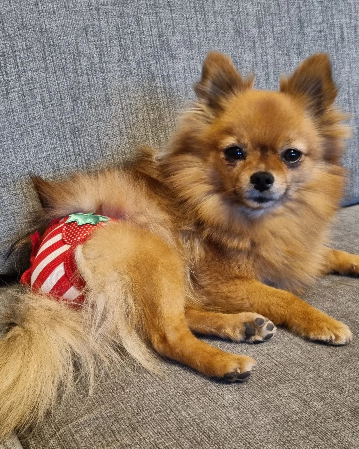 Cessie bär storlek S på bilden och hon är 30 cm i midjan.