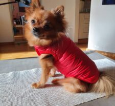 Utrustad med 3 metallknappar som gör att du enkelt kan ta på eller ta av. Tredimensionellt utskär gör att din hund inte blir för tjock utan kan röra sig fritt och utan återhållsamhet.