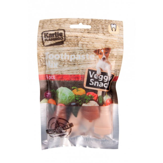 VegieSnack är det ultimata lilla mellanmålet och en riktigt god belöning för din hund. Består av växtbaserade ingredienser och har utvecklats speciellt för att hålla hundens tänder rena.